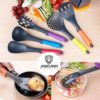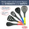- EASY TO USE ☆ Heat resistant up to 392 degrees F – Nylon utensils are ideal for use with non stick cookware. You’ll enjoy the comfort and quality of these soft touch handles which makes working in the kitchen a delight